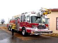 Photos of the 2006 Ferrara Aerial Truck on December 21, 2006 as acceptance tests are performed.