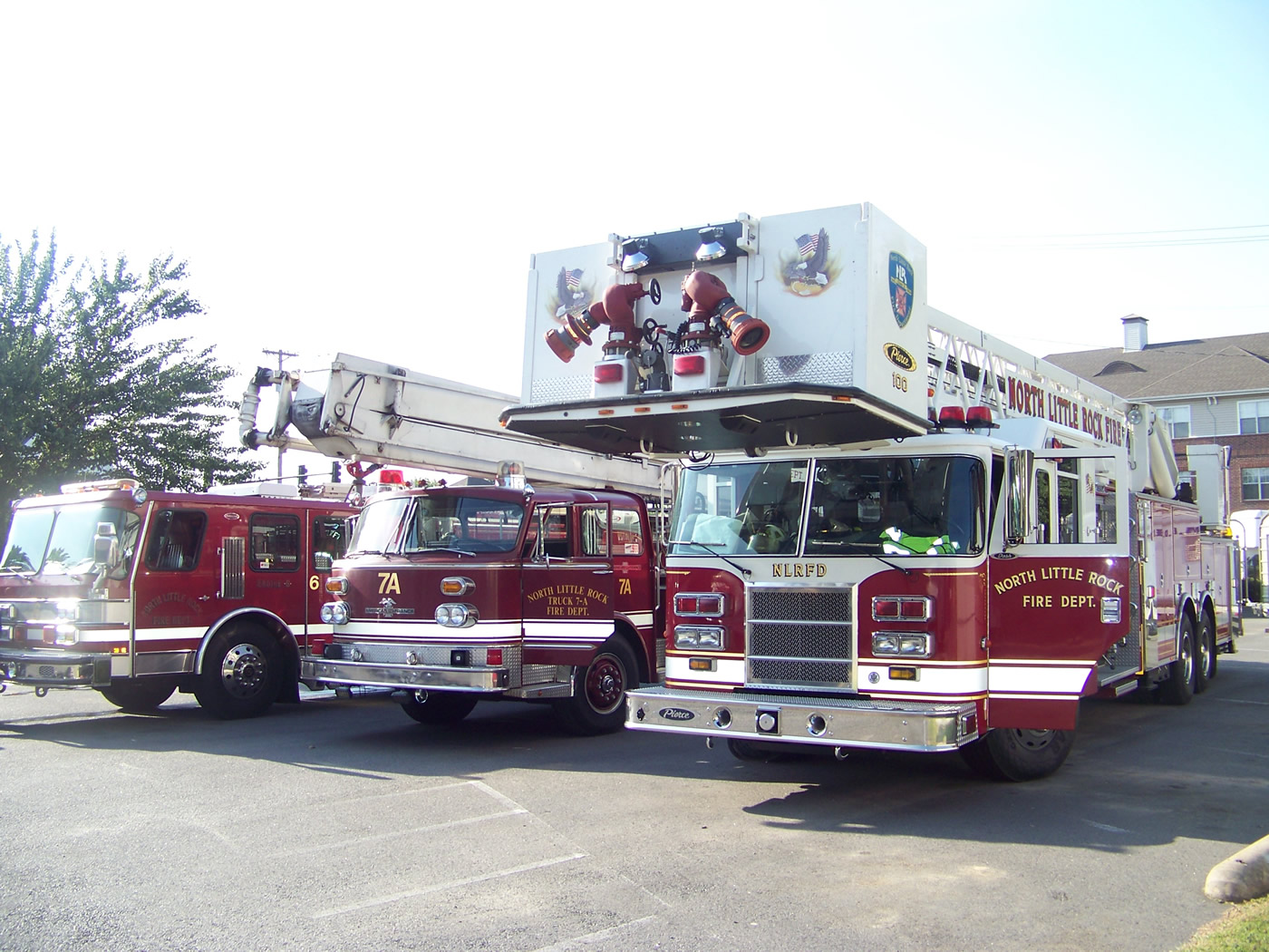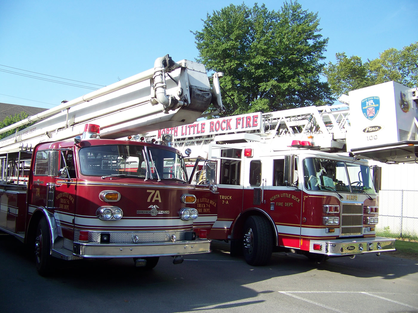 August 3, 2010: Truck 7 exchanges equipment from Truck 7 2002 Pierce Platform to Reserve Aerial 1 (1975 Snorkel- American LaFrance.) Engine 6 (top photo) was also at Central. Truck 7 will have damage sustained in an accident (not the fault of the NLRFD) repaired, including the Q-tone siren. Both Aerial Companies of the N.L.R.F.D. are now operating on a reserve aerial apparatus |