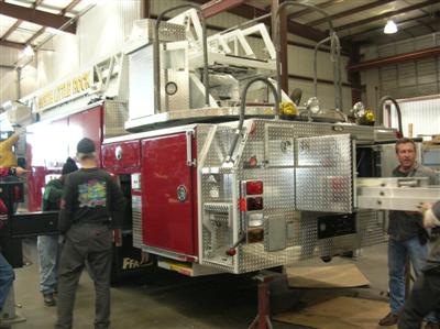 Photos on 11-9-06 - The new NLRFD Aerial has the body added. |