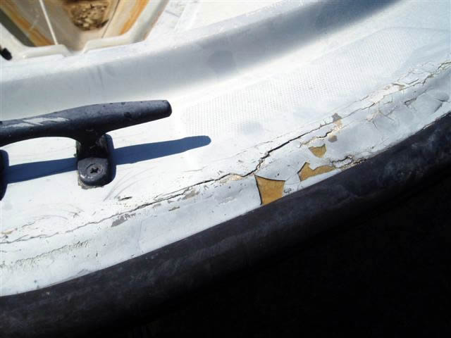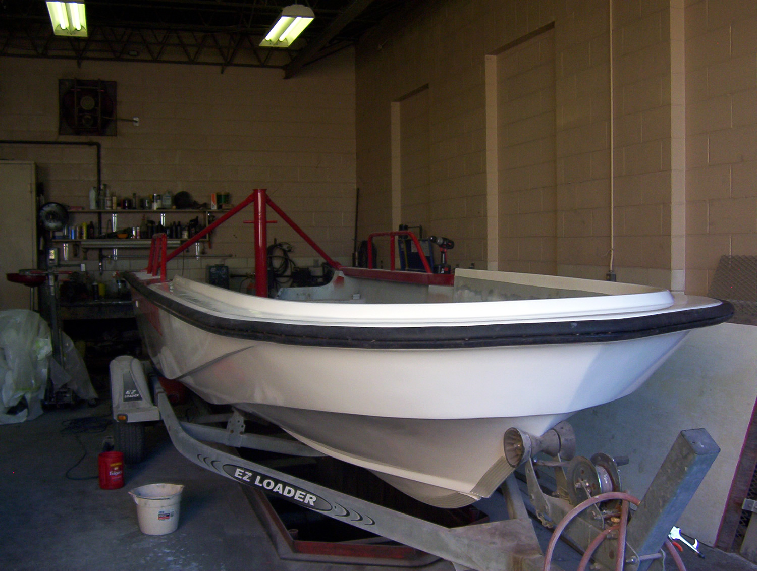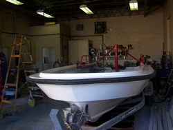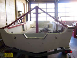 surface of the boat that will be in water. Lettering has also been applied. Note that the "A-Frame"