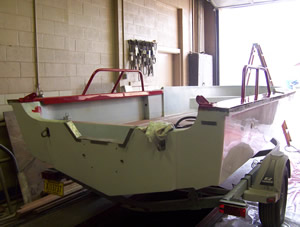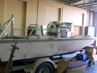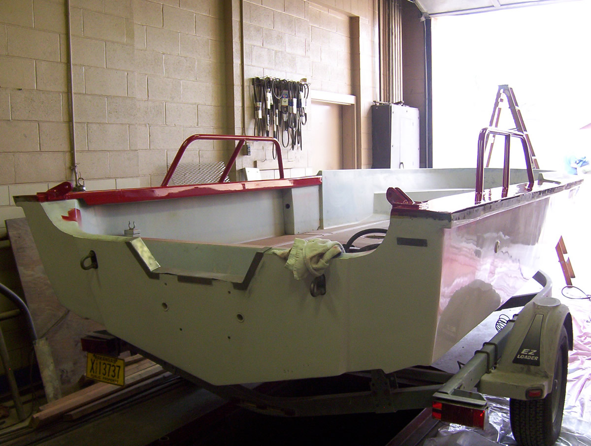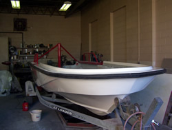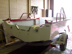 The Photos below were taken on December 28, 2005. By this point the boat had been thoroughly sanded and primed.